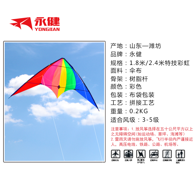 Weifang Kite Yongjian 1 8 2 4m triangle with sound rainbow double-line sports stunt kite feeding board