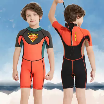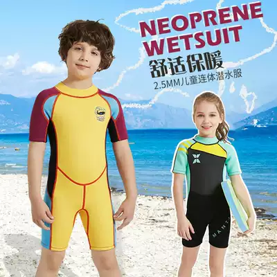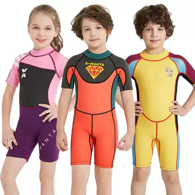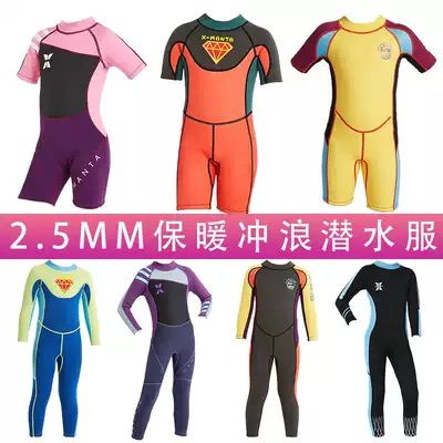 The new children's swimwear girls and boys cluster warm thickened 2 5MM winter swimming cold dry suit fu qian fu