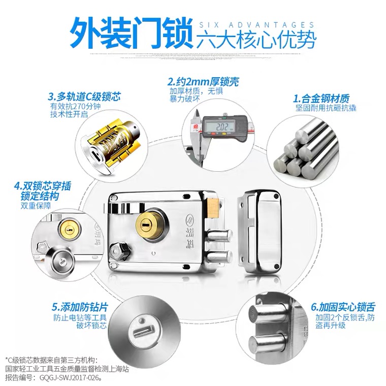 Yuema super B-class exterior door lock iron door old-fashioned anti-theft door lock indoor lock room door lock anti-pry wooden door