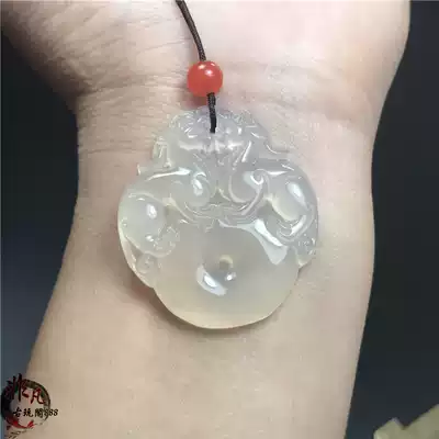 Natural agate chalcedony pendant Ice white chalcedony double Pixiu fashion simple jewelry to pick up leakage first choice for birthday