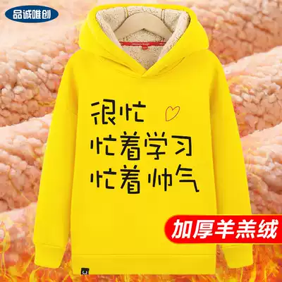Boy plus velvet sweater 2021 New lamb cashmere hooded thick warm top child Korean trend winter clothes