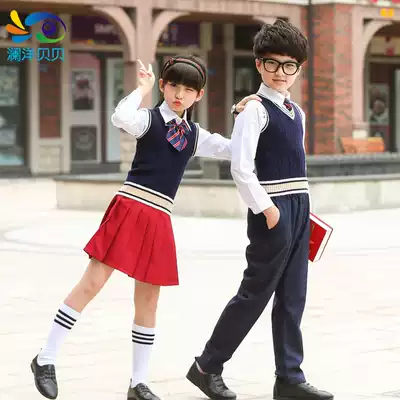 Navy blue school clothes pants cotton suit pants female boys elastic waist black British primary and secondary school students children straight tube