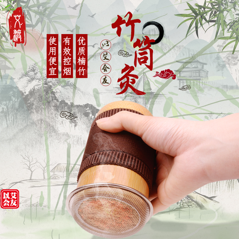 New bamboo moxa tube bamboo tube moxibustion control smoke moxibustion pot Fuyang hanging moxibustion gun health museum special warm moxibustion device engraved ogo
