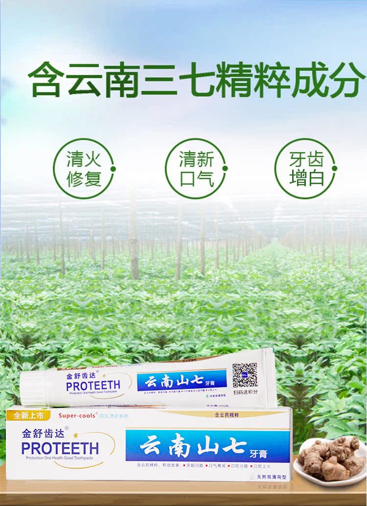 180g Jinshu Tooth Kang Yunnan Panax notoginseng toothpaste large branch family pack to remove bad breath fresh to yellow gum care mint