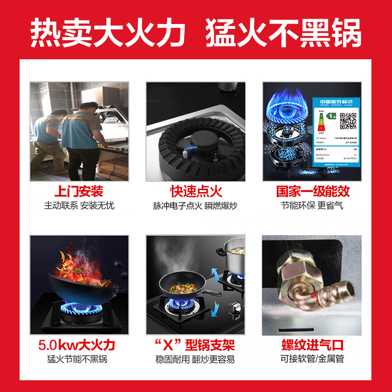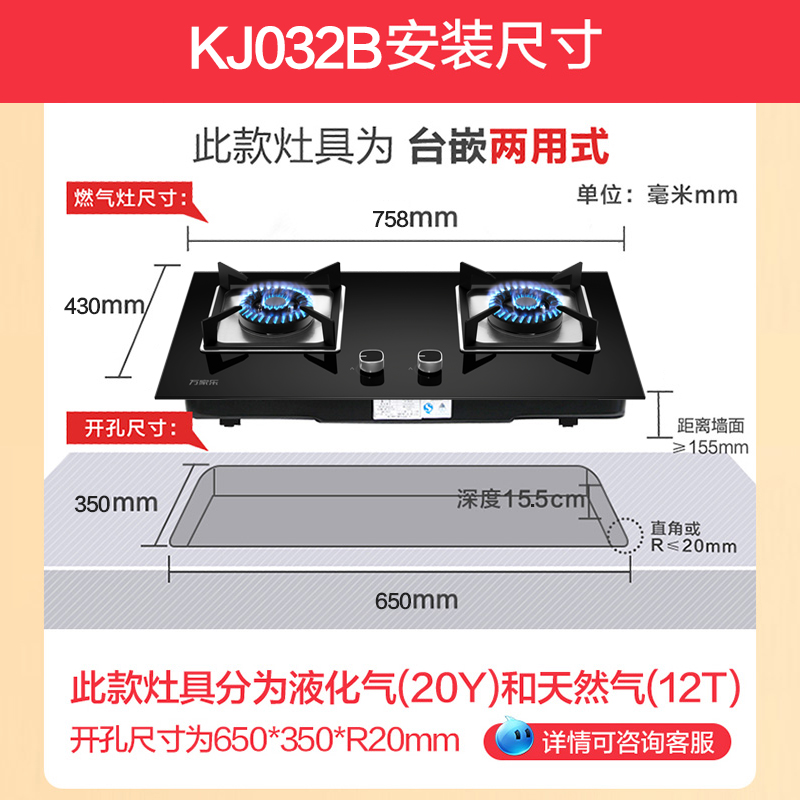 Wanjiu KJ032B gas stove Double-port gas stove Table gas liquefied gas stove Embedded gas stove Household appliances
