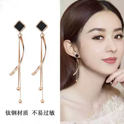 European and American fashion versatile titanium steel earrings long geometric diamond earrings female exaggerated temperament hypoallergenic simple earrings