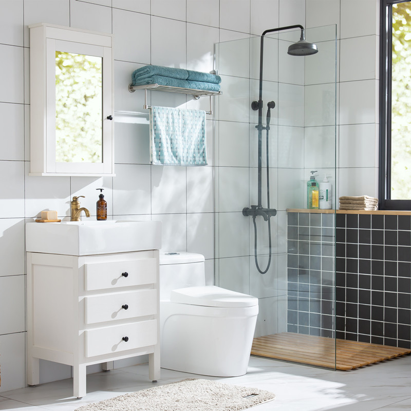 Nordic Modern Minimalist Bathroom Bath Cabinet Combined Solid Wood Wash Terrace Floor Type Small Family Wash Basin Dressing Room