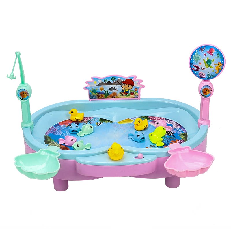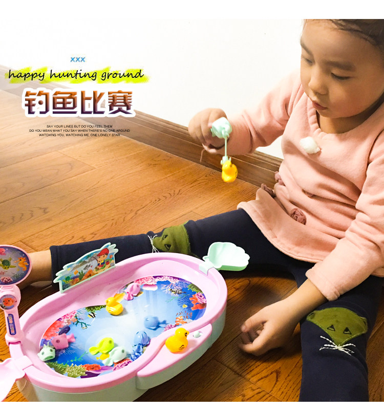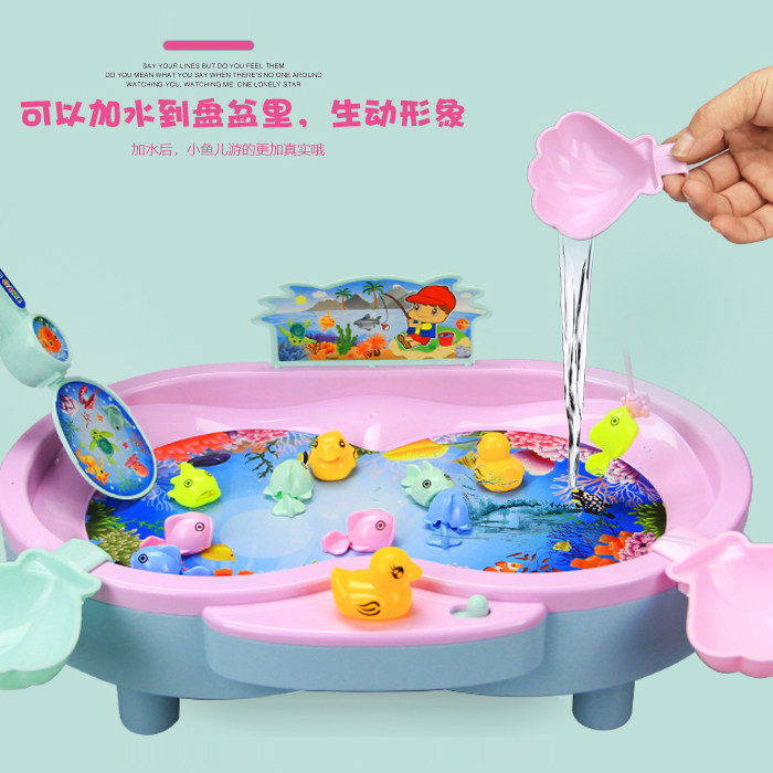 Magnetic Children's Fishing Toy Set Large Wheels Electric Rotating Kitten Fishing Boys and Girls Baby Toys 3