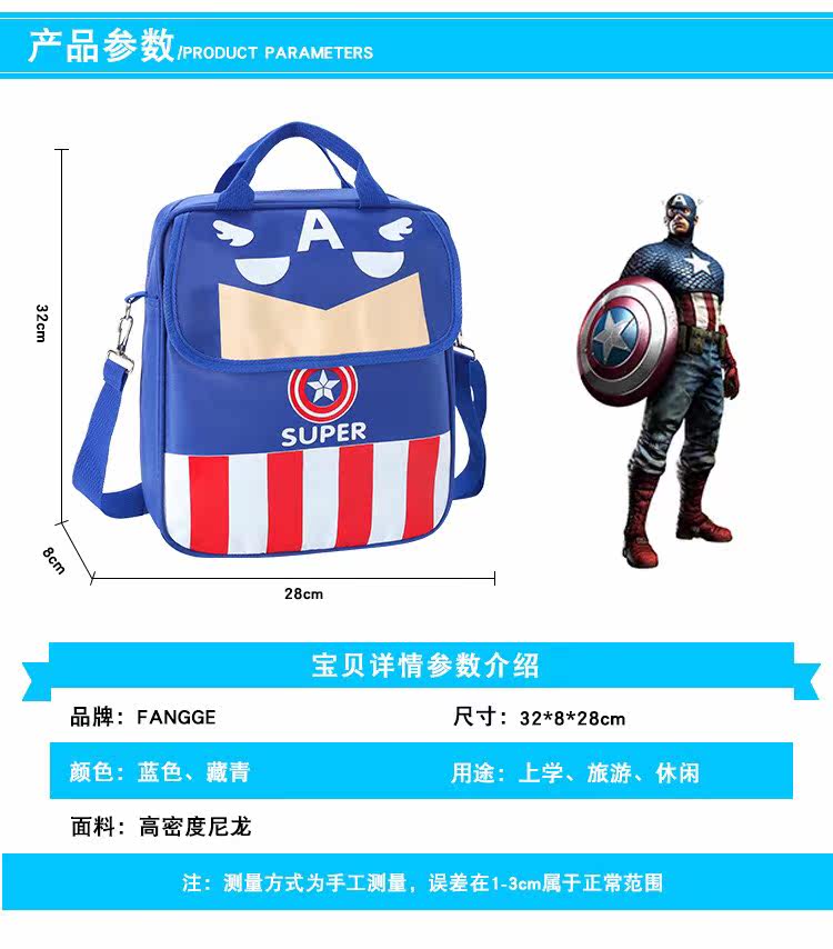 Primary school Captain America remedial bag boys handbag remedial bag shoulders diagonal bag three-use schoolbag book bag