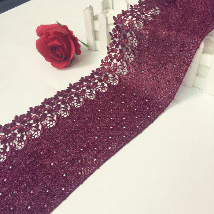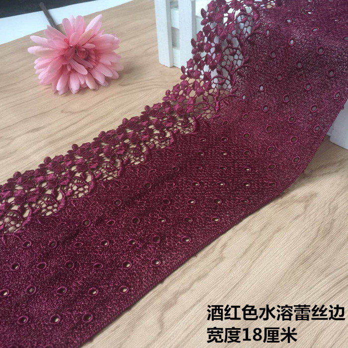 Deep wine red thickened and widened exquisite embroidery water-soluble lace skirt hem skirt trim accessories