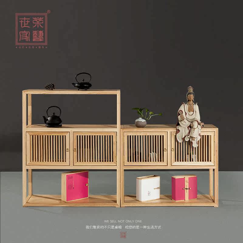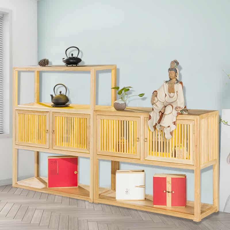 New Chinese solid wood tea display tea room Simple multi-treasure pavilion Bogu shelf Study floor-to-ceiling shelf storage cabinet