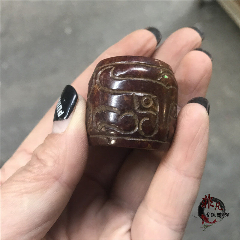 Antique ancient play miscellaneous jade Anti-Han Dynasty Old Xiu jade finely carved beast head Finger Ring High Ancient Jade Collection Hot Sell