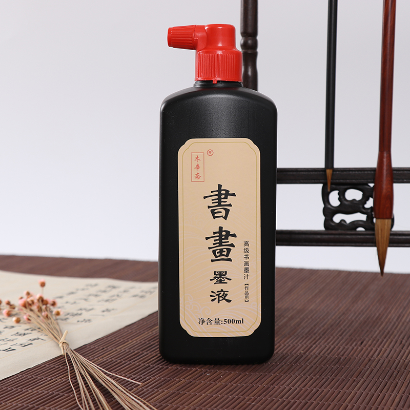 Wood Siming Fasting Ink Calligraphy Special room Four Treasure Calligraphy Ink 500g large bottle ink Mao pen character Private calligraphy Painting Large capacity State Painting Supplies Golden Ink Ink Painting students beginners