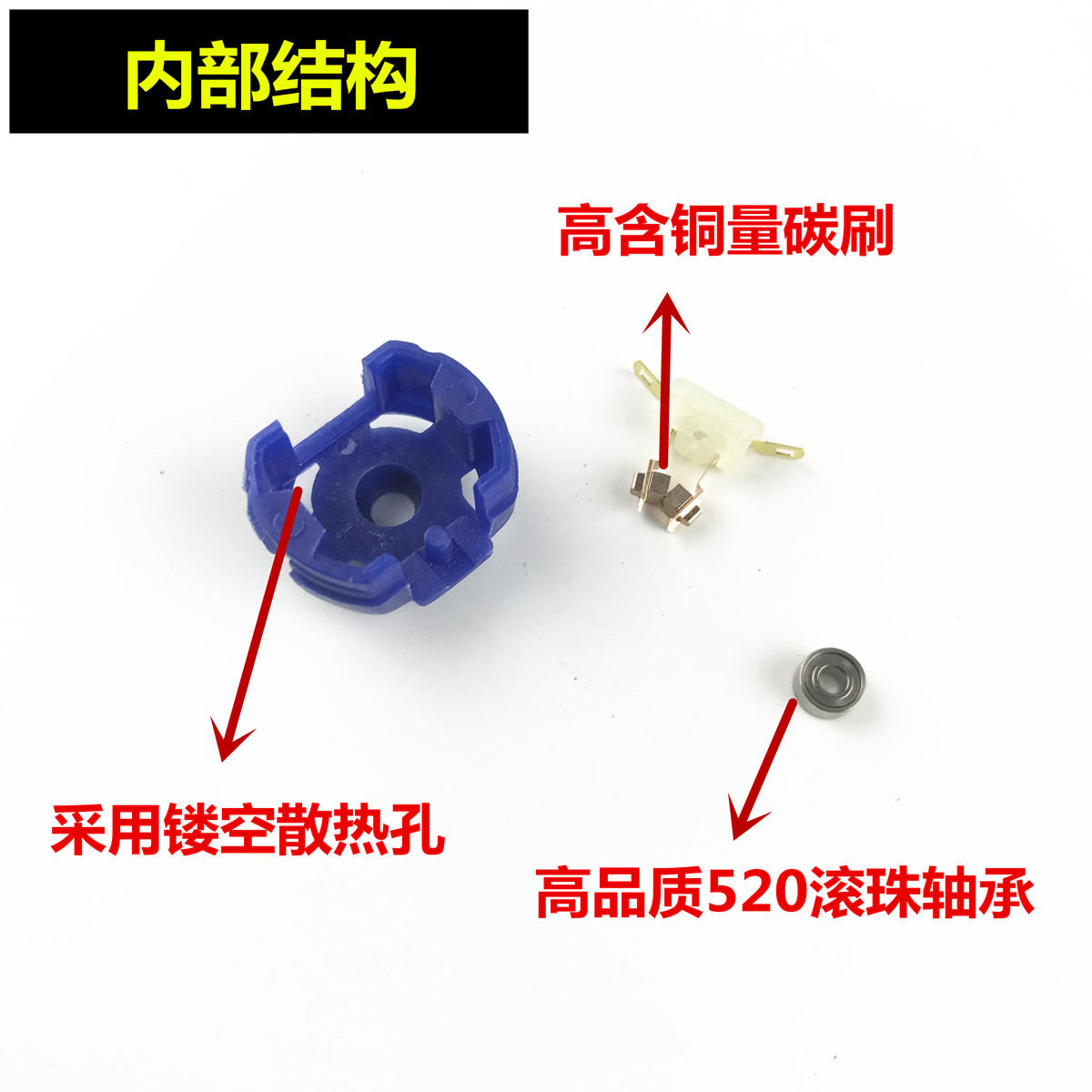 1 x Black ball bearing carbon brush back cover 1 x Blue ball bearing carbon brush back cover 1 x red ball bearing carbon brush back cover