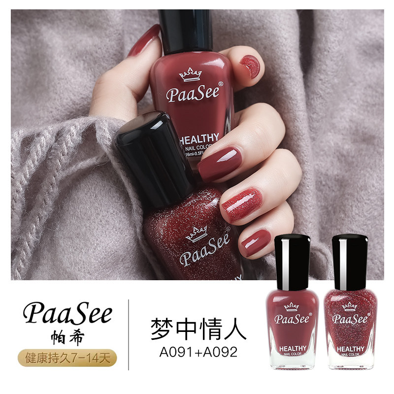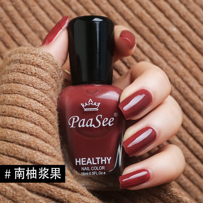 PaaSee odorless nail polish women's manicure lasting waterproof, non-fading, non-peeling, roasted solid color wine red big cherry