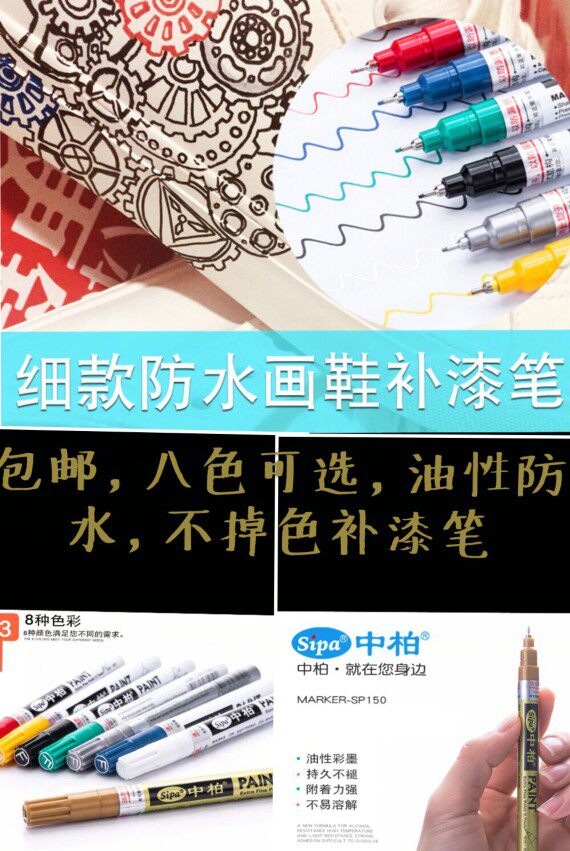 Hand-painted DIY clothing clothes T-shirt painting shoes graffiti black and white waterproof not fade tire paint fine paint marker pen
