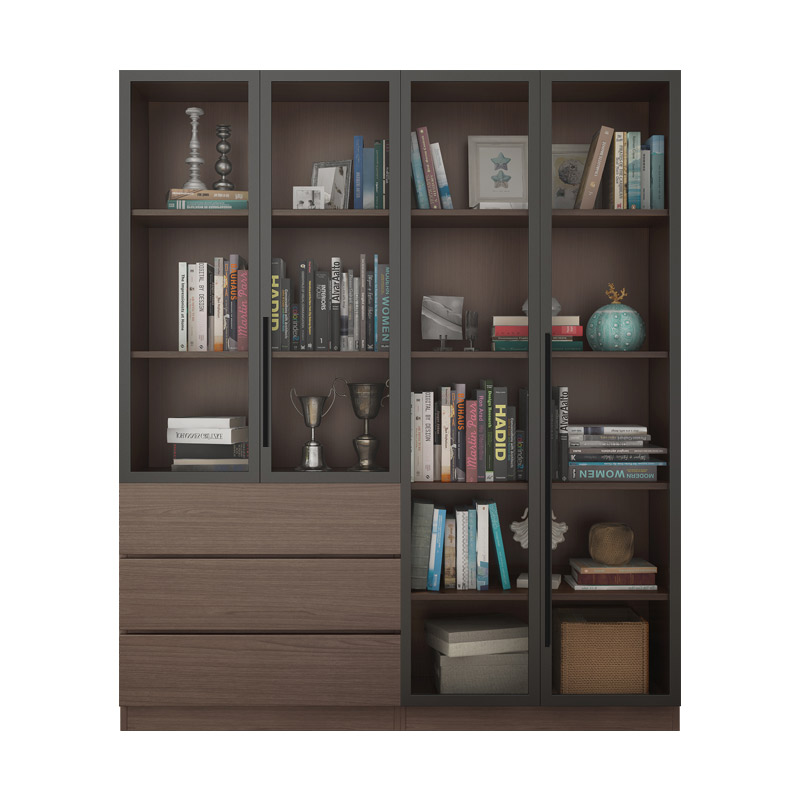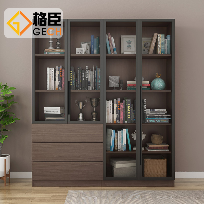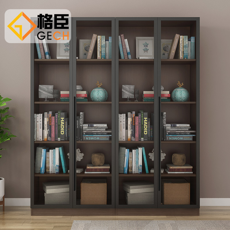 Simple and modern bookcase and bookshelf combination with glass door floor-to-ceiling bookcase Nordic household economical storage cabinet