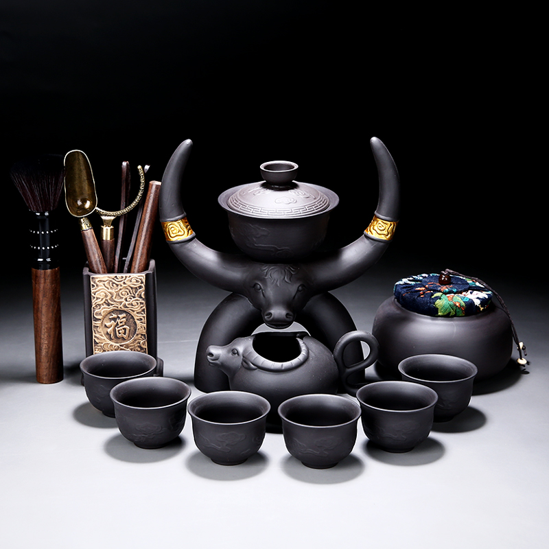 Purple Sand Spring Cattle Tea Circuit Tea Coffee Can Purple Sand Spring Cow Delivery~Purple Sand Spring Cow Delivery~Gold~Foam-Foam-filled ceramic kiln to turn green ·Bamboo News Ping An Foam Foam ceramic kiln white