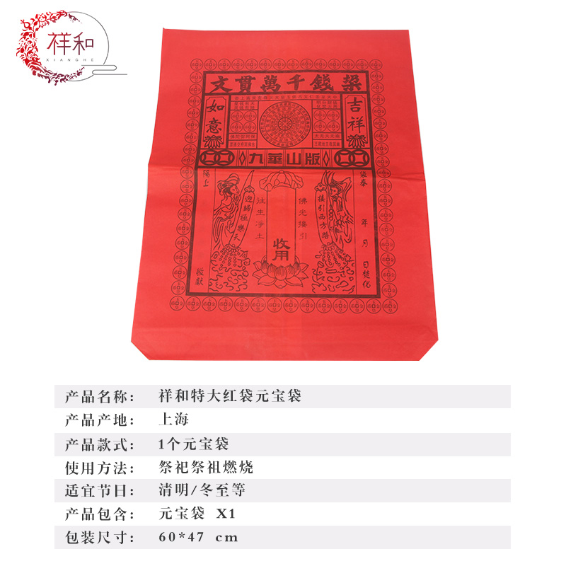 Extra large ingot bag red bag 1000 Yuanbao 60X47CM red bag paper bag burning ancestor Qingming Winter Solstice
