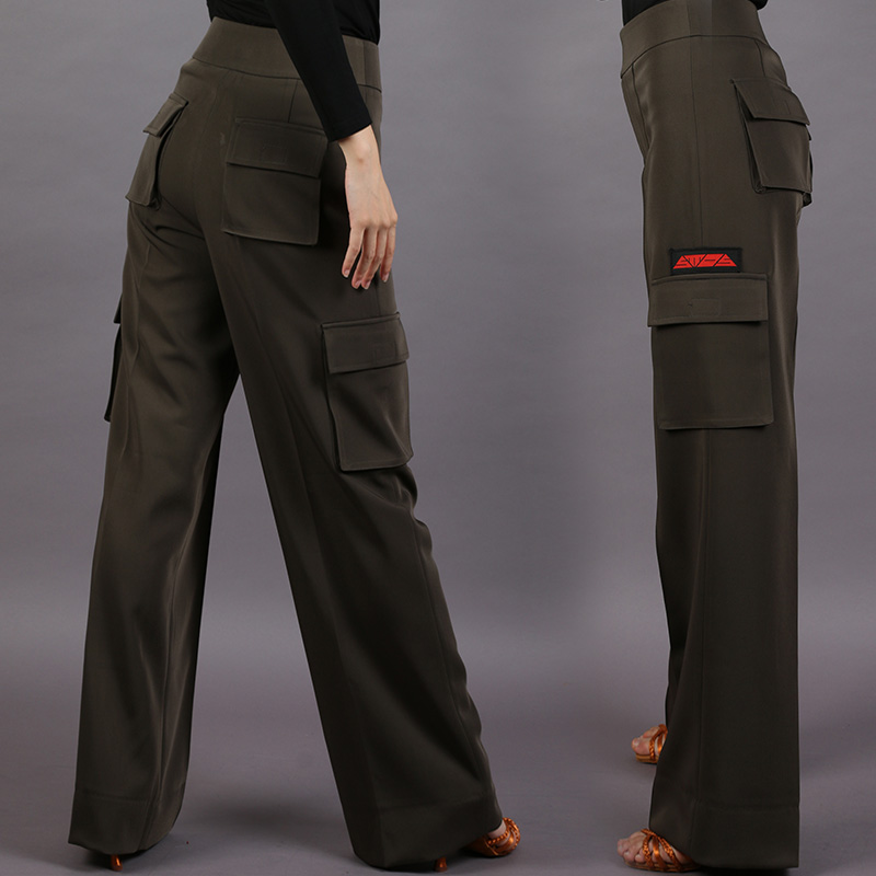 Triple Wood Tanth Lady Dance Pants Practice Pants Autumn Winter Loose Latin Morden Dance pants Long pants Social dance Pants Pocket Pants