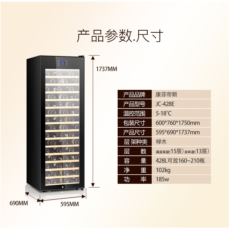 Candor428L red wine cabinet transparent glass door wine refrigerated storage cabinet thermostatic wine cellar touch screen temperature-controlled