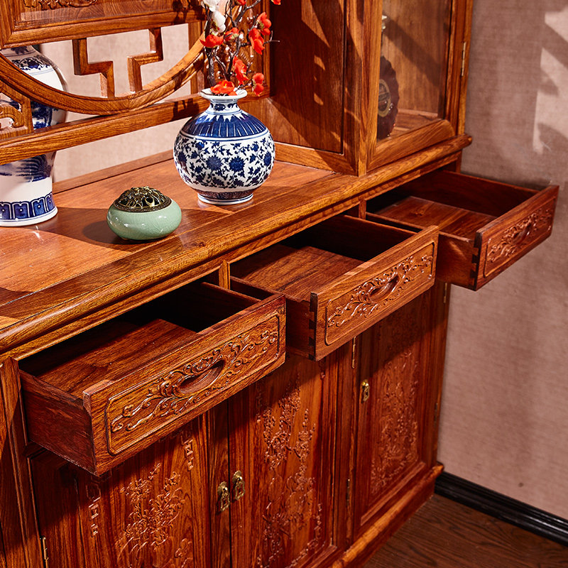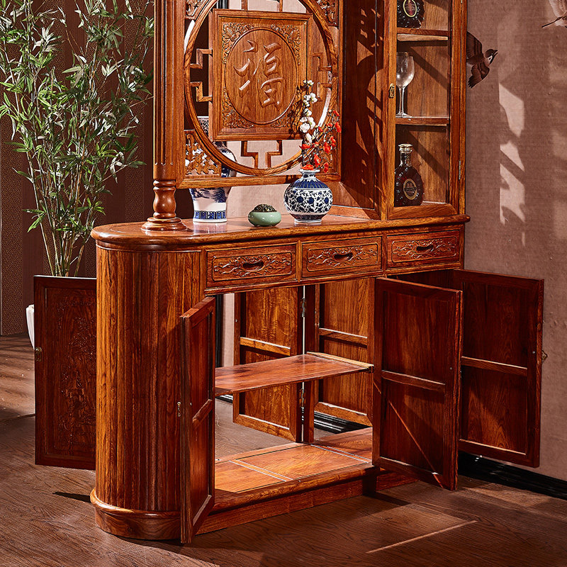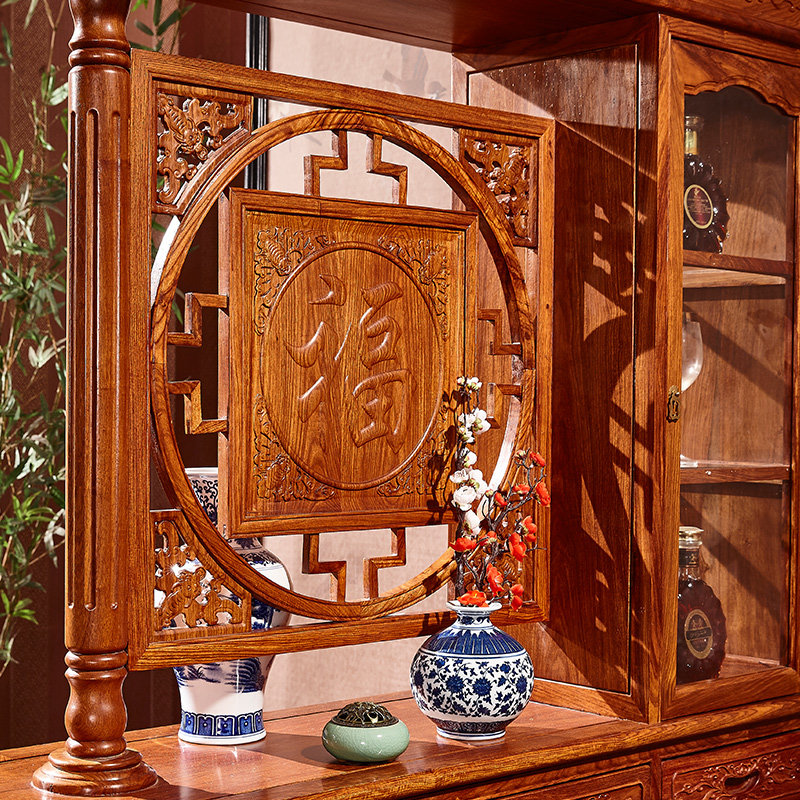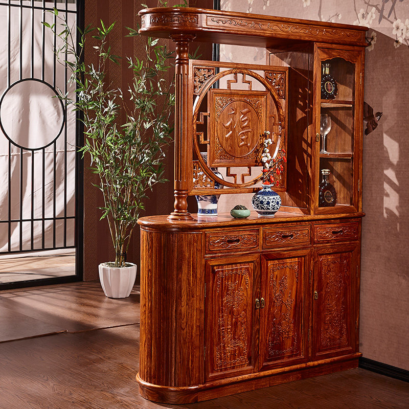 Solid wood Guan Guan Cabinet Flowers Pear Wood Partition Red Wood Furniture Screen Set of Chinese Hedgehog Purple Sandalwood Wine Cabinet Door Hall Cabinet
