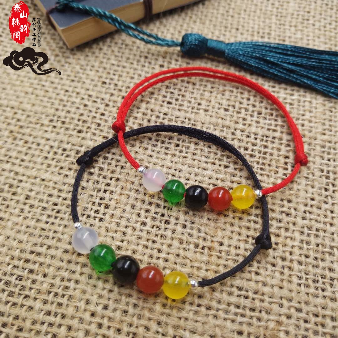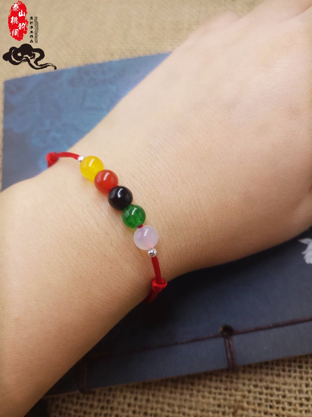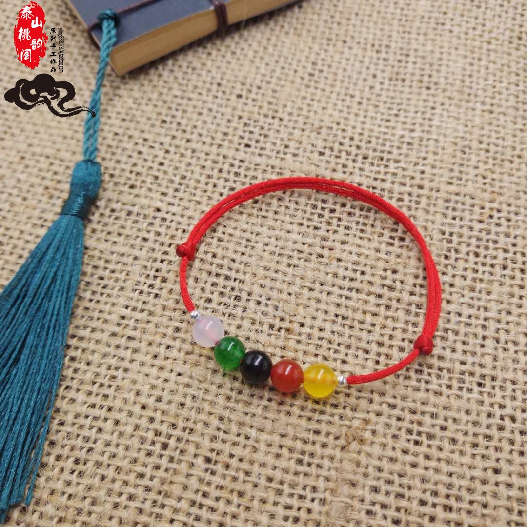 s925 silver beads Ben life years too old rope for men and women red rope Handmade simple foot chain Manau hand rope end of the afternoon 5 colorful rope