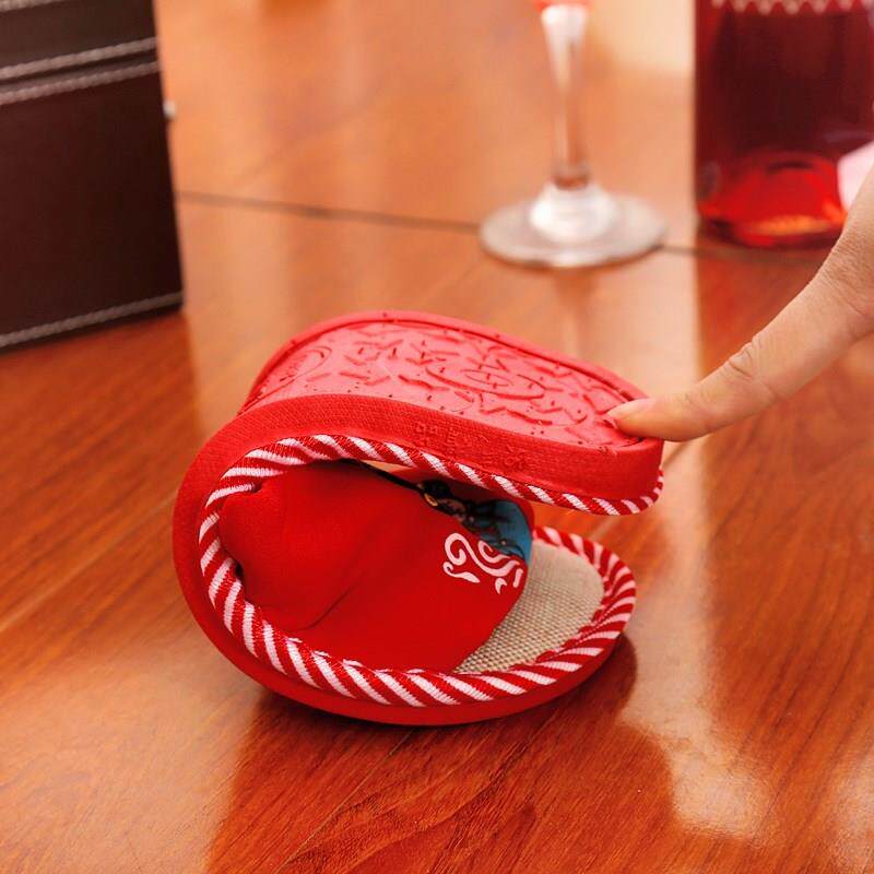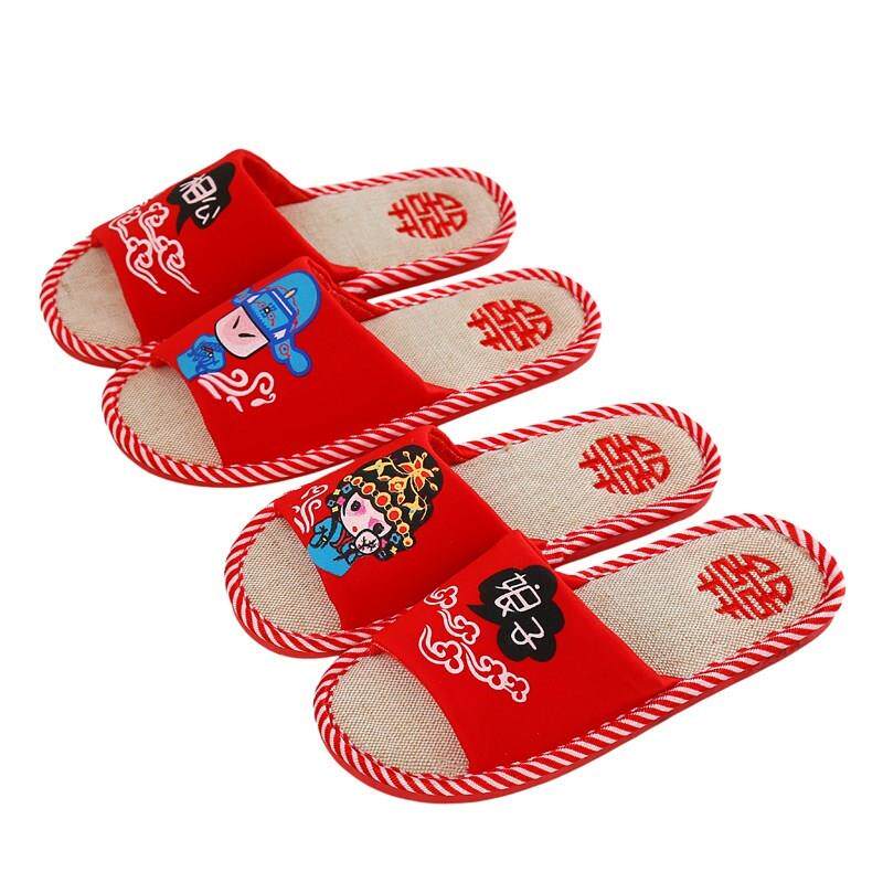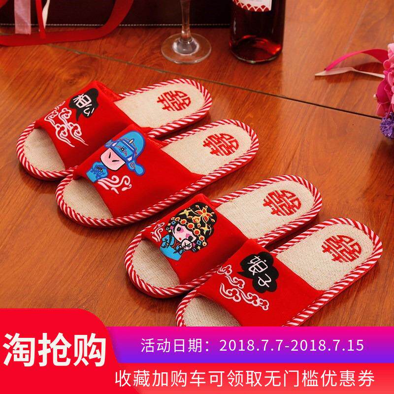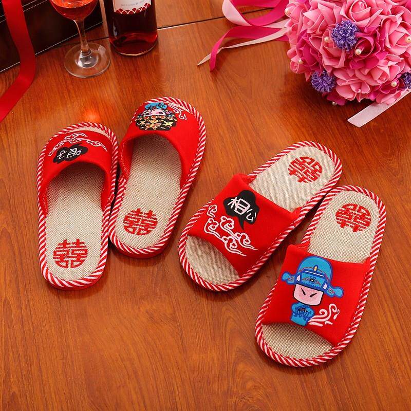 Husband and wife wedding slippers couple happy red a newly married wedding home indoor wedding creative summer