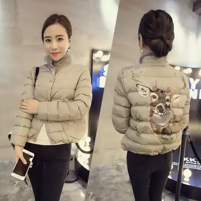 Hong Kong 2019 Winter wear new deer head printing short down cotton coat high neck cotton coat high neck cotton coat slim small cotton padded jacket women