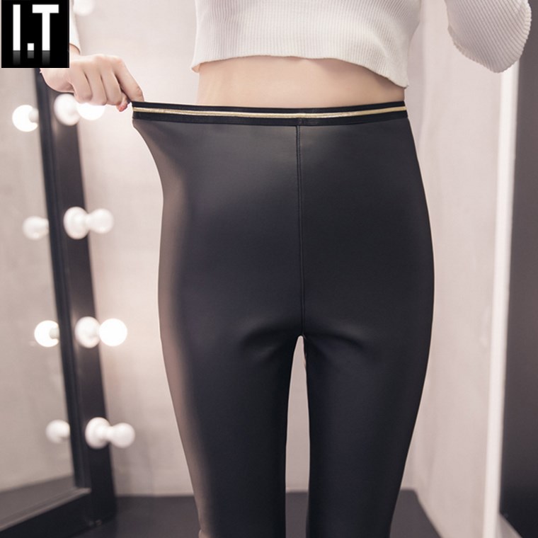 Hong Kong 2021 Fall and Winter Full Leather Pants and thick pants wear pants and pants elastic large size pants