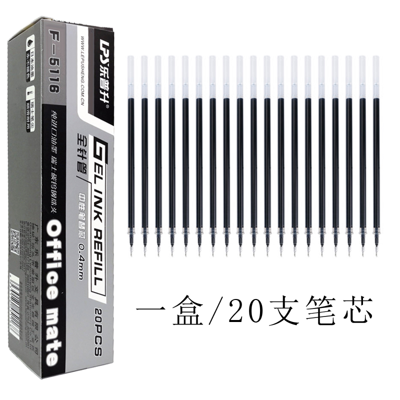 Le Pu Sheng simple gel pen black signature pen fresh student pen 0 4mm gel refill office pen full needle tube gel pen refill black water-based pen stationery supplies