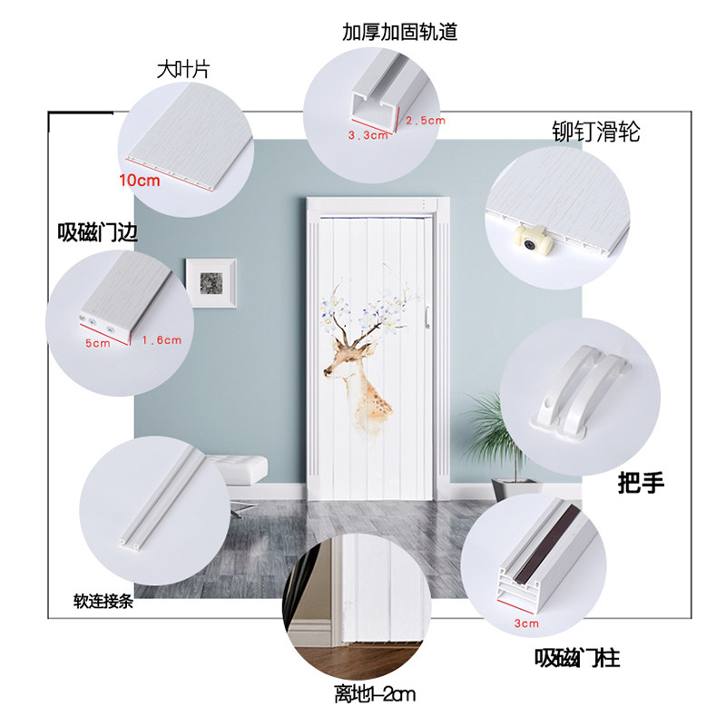PVC folding door Indoor Ramen Kitchen Living Room Compartment Pendant Wheeled dressing room Balcony Shop Invisible Door