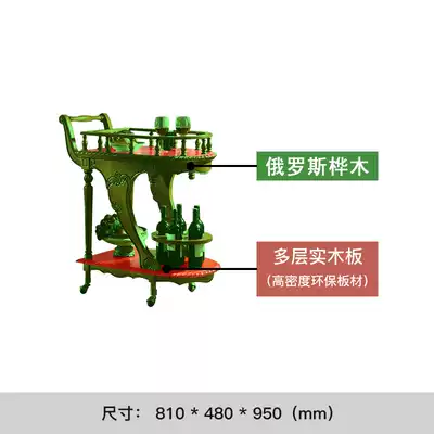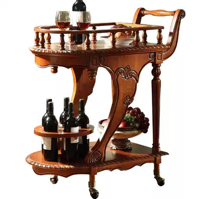 European style solid wood hand push mobile food delivery car American small cart dining room hotel double wine stand tea car