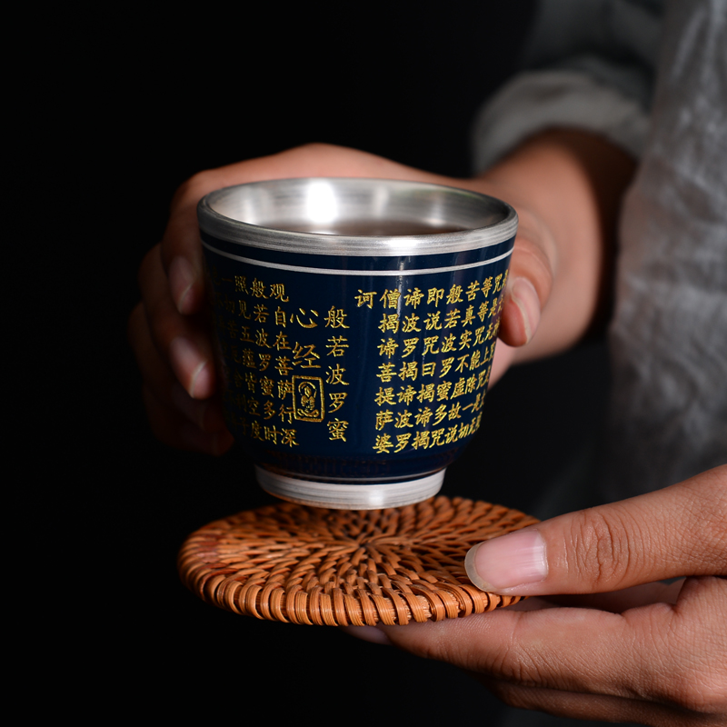 999 sterling silver tea cup ceramic kung fu tea set blue gilt silver tracing gold heart meridian cup great compassion mantra master cup tea tasting cup