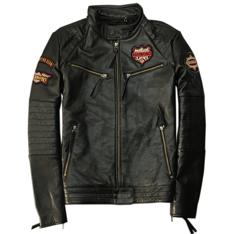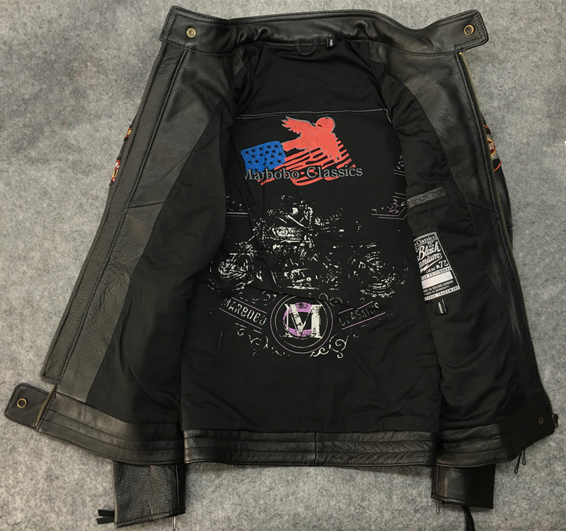 Headlayer cow leather men's leather leather clothing locomotive leather jacket locomotive clothes Indian head embroidery upright collar European and American