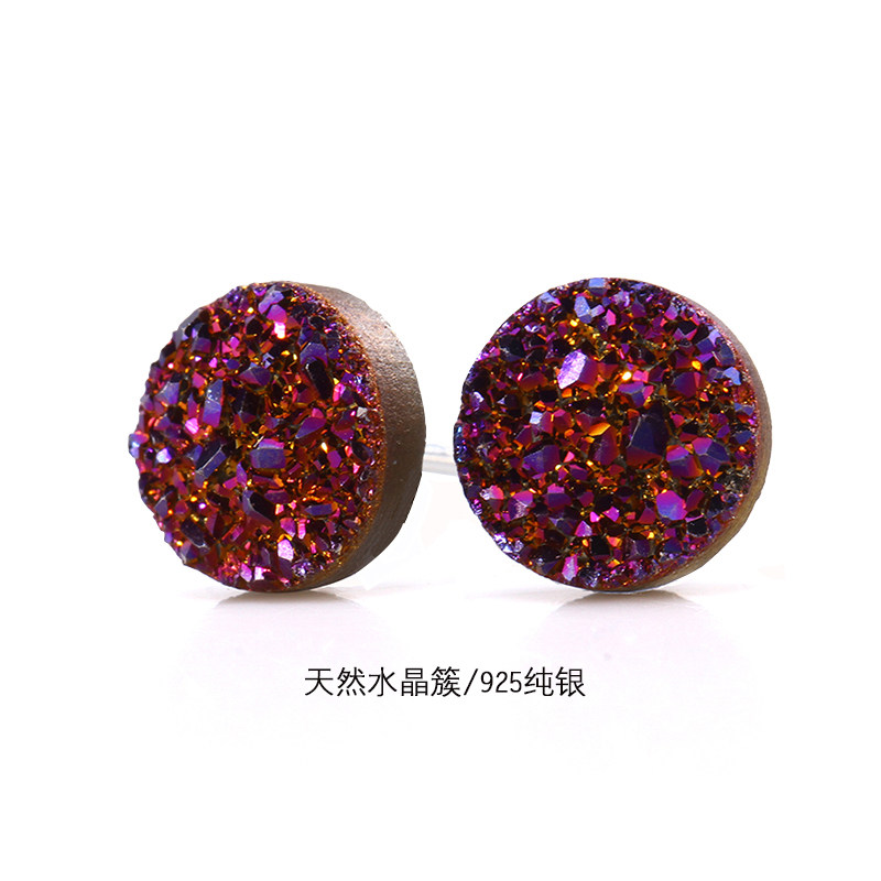 A STAR US designer natural crystal cluster earshot male and female new brief about 925 pure silver purple red overflash