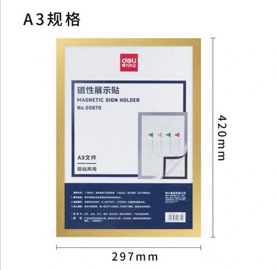 Deli A6 internal magnetism (dual use of suction and adhesive on the back) silver deli A4 internal magnetism (dual use of suction and adhesion on the back) silver deli A3 internal magnetism (dual use of suction and adhesion on the back) silver deli A4 internal magnetism (dual use of suction and adhesion on the back)