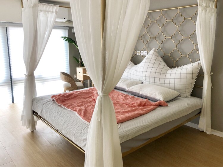 Wrought iron double bed 1 8 15 meters Nordic modern ins net red bed Family bed and breakfast Iron frame bed Gold single bed