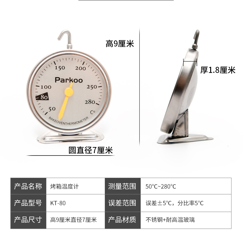 Mini oven thermometer stainless steel suspension household baking tool high temperature temperature gauge hanging and sitting dual-purpose