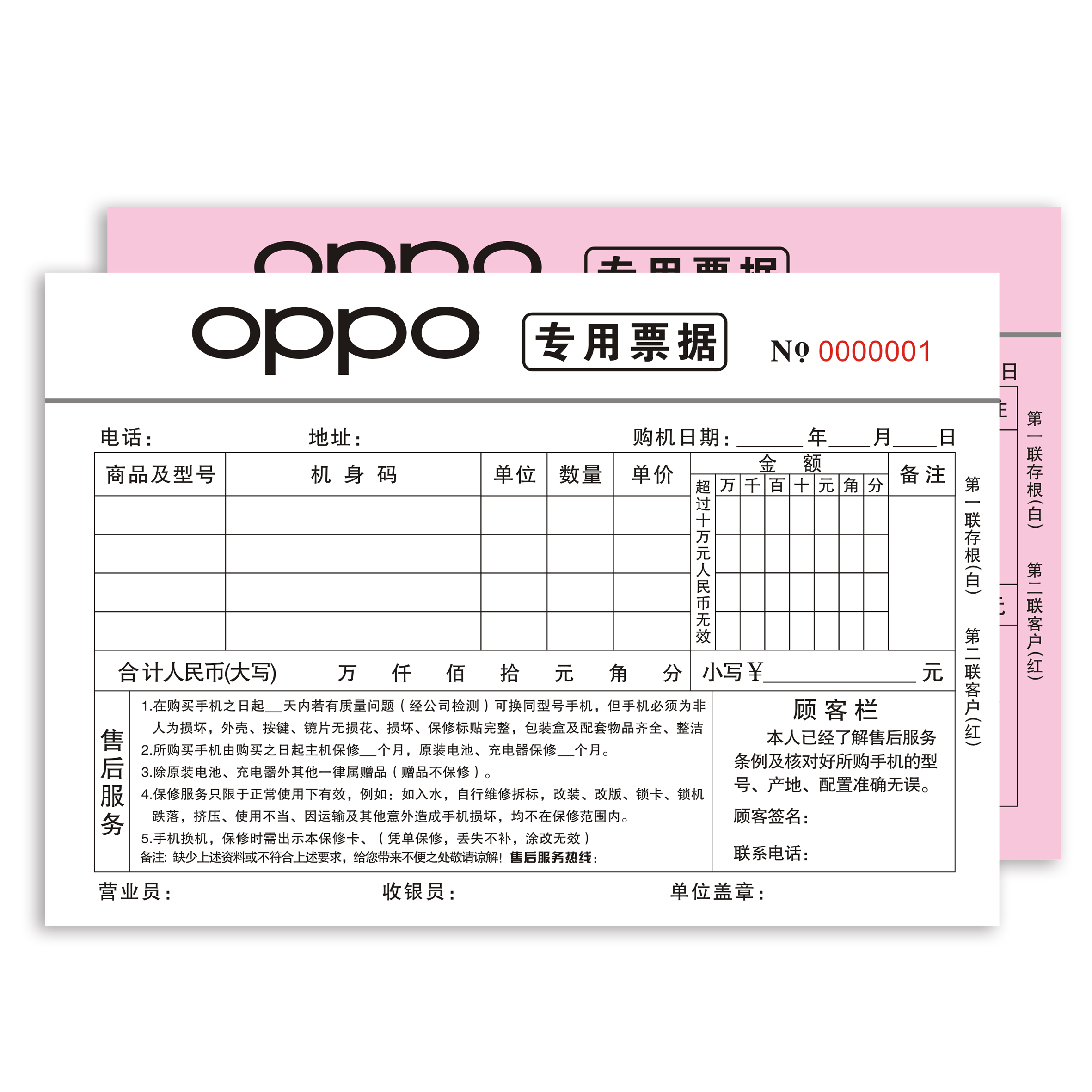 OPPO mobile phone sales single mobile phone shop warranty certificate invoicing book carbonless copy receipt joint single bill can be customized