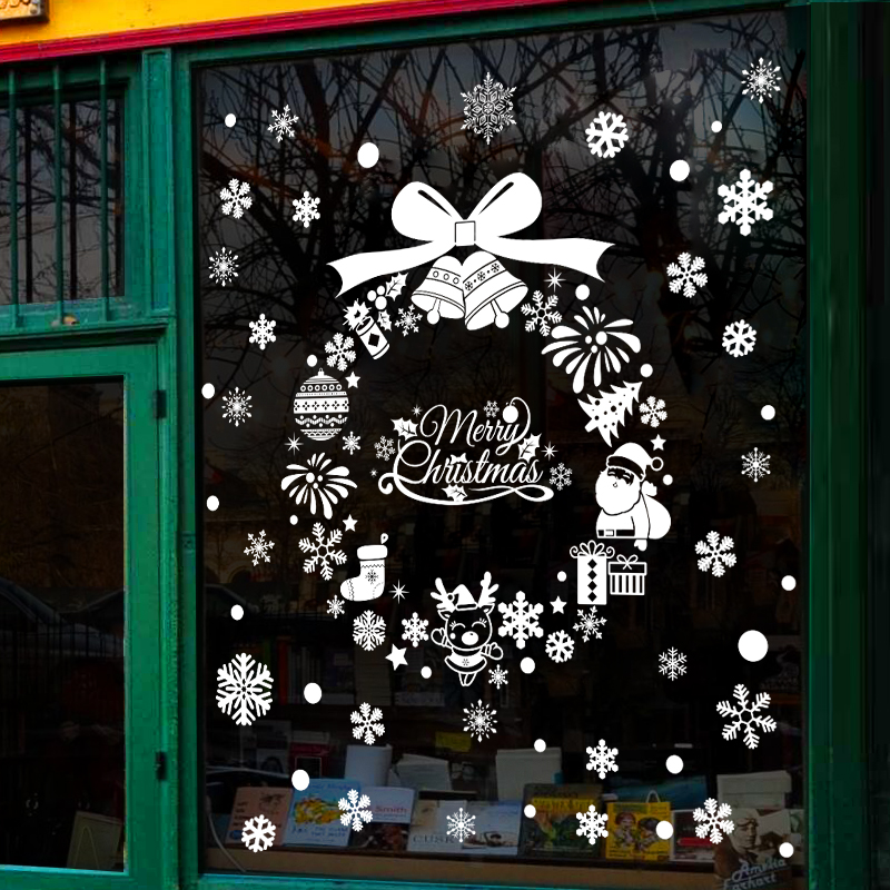 Christmas Festival Adornment Glass Door Stickers for Christmas Flower Ring Wall stickers Window Flower Window Self-adhesive Wall Stickers