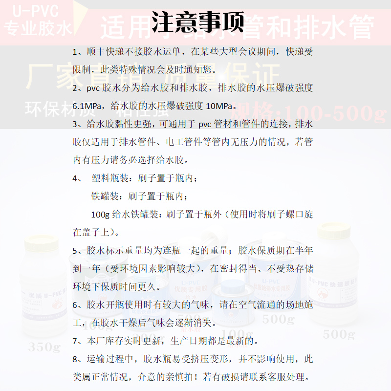 PVC glue special water pipe adhesive drainage glue Drainage pipe Pipe Wire pipe fitting sewer glue