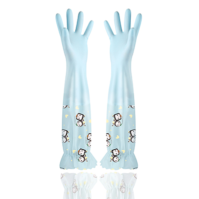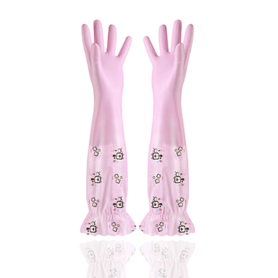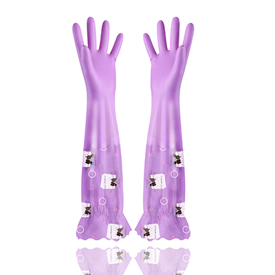 Fresh colour series lengthened gush warm housework cleaning gloves with lotus leaf side bunches