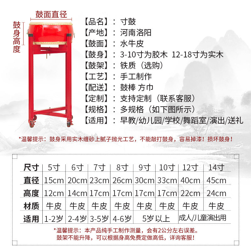 3-inch sheepskin drum 10*11cm3-inch sheepskin drum Small cymbal 5-inch cowhide drum 15*12cm5-inch cowhide drum Small cymbal 5-inch cowhide drum