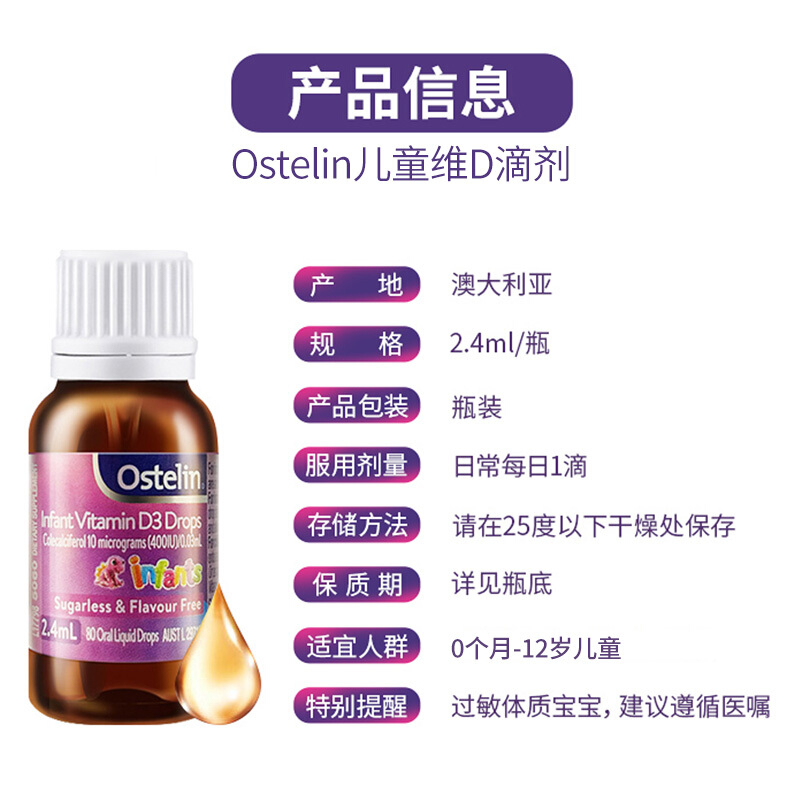 Ostelin Austerlin Vitamin VD3 drops supplements for babies and infants with calcium 2 4ml direct mail