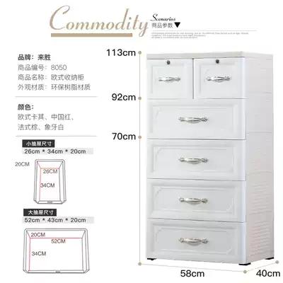 58 wide and thick European-style plastic wardrobe drawer storage cabinet Multi-layer storage cabinet Baby finishing cabinet Chest of drawers