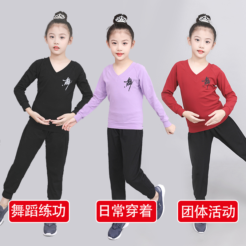 Children dance girl girl long sleeve practice Qiuqiu Winter male girl dancing clothes suit Two style Chinese dance clothes