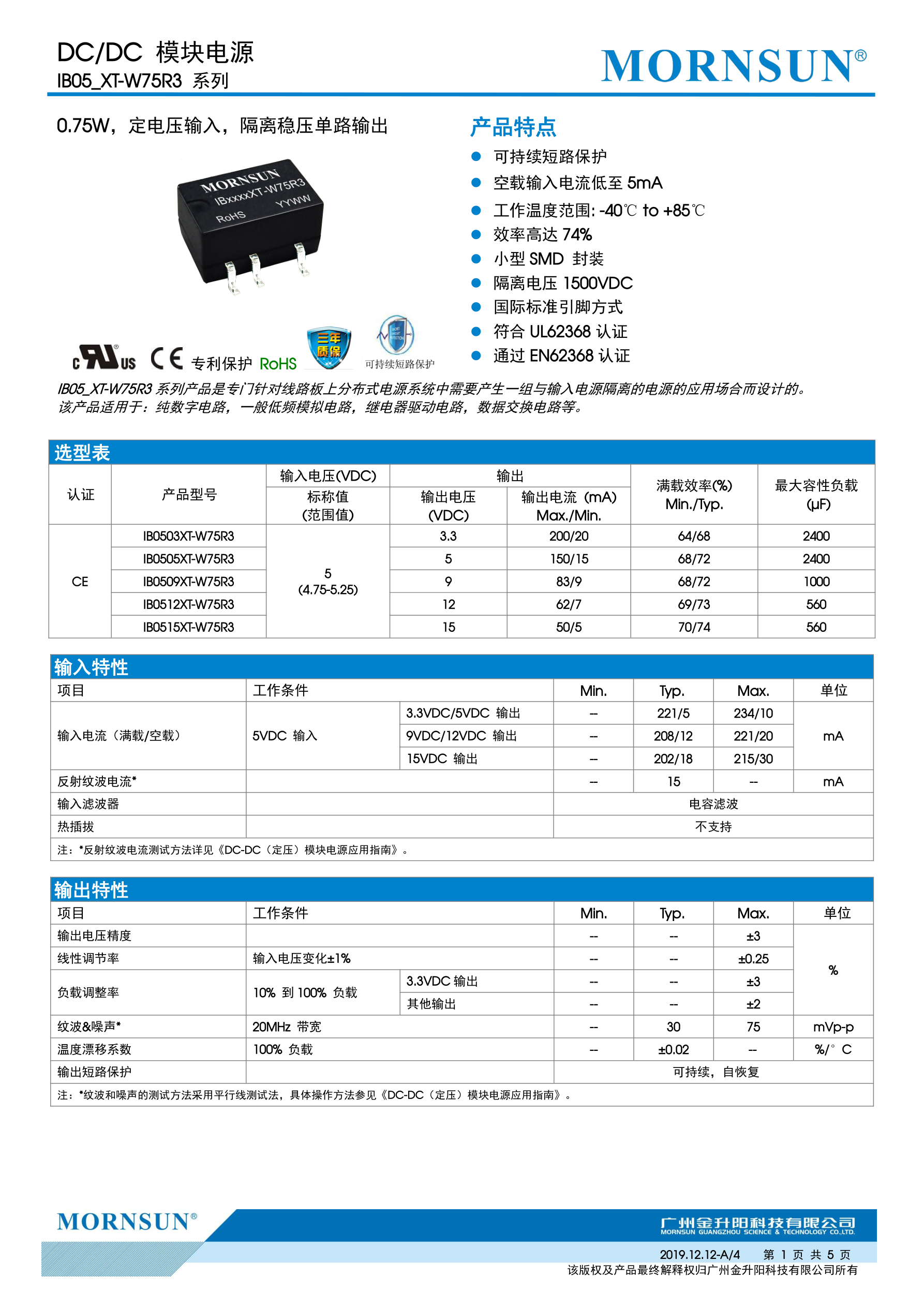 IB0503XT-W75R3(5V go 3 3V regulation) IB0505XT-W75R3(5V go 5V regulation) IB0509XT-W75