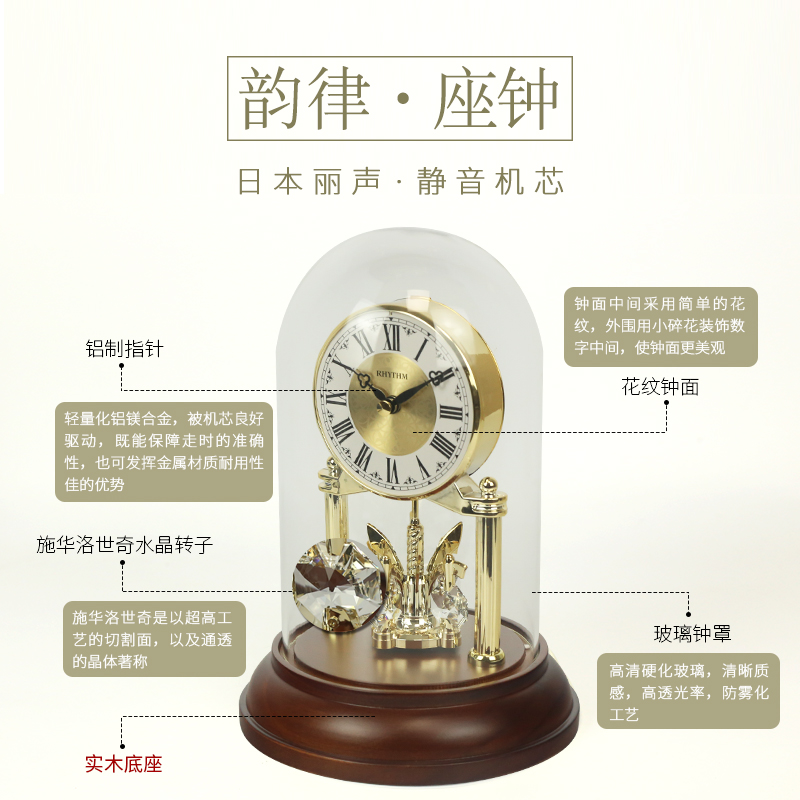 RHYTHM Li Sheng watch Living room bedroom desk clock Office European-style desk clock Crystal rotating decorative decoration