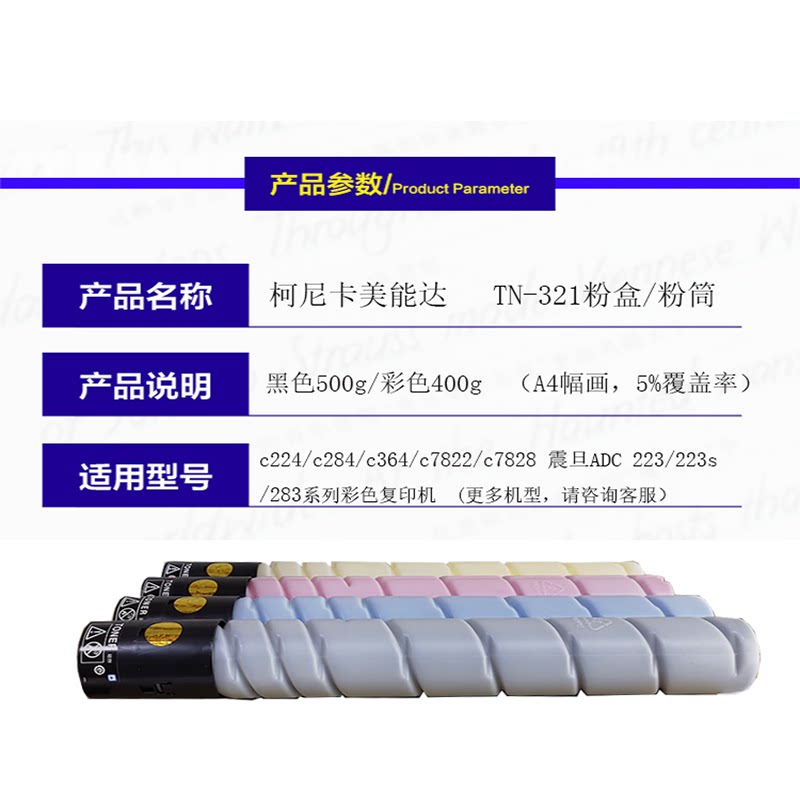 The application of ke mei TN321 compact Minolta c224 C284 C364 C7822 C7828 Bachuan Toner